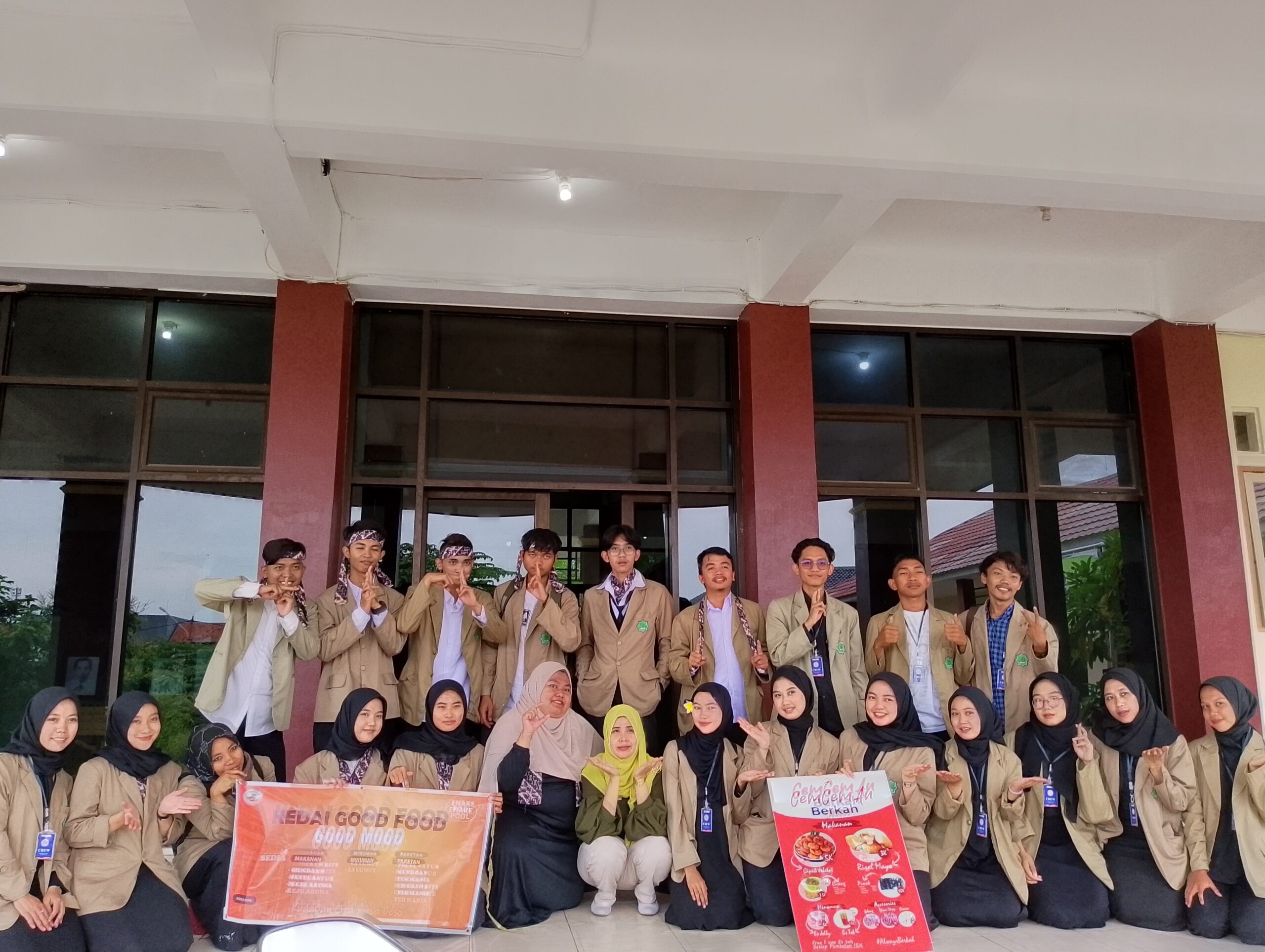 Kelompok pertama menamai stannya dengan “kedai good food, good mood” kedai yg mengusung makanan jadul dan modern. Dimana produk jadul yang menjadi unggulannya adalah pecel dan tempe mendoan dengan alasan bahwa salah satu mahasiswa berasal dari Cilacap yang mana terkenal dengan tempe mendoannya. Kemudian untuk produk modern unggulan yg dijual adalah chicken BITS sejenis ayam tepung filed yg digoreng pake tepung dan dibumbui sesuai selera konsumen pedas dan manis, adapun penyajiannya dipotong kecil-kecil kemudian dimasukkan ke dalam cup dan dikasih tusuk sehingga praktis saat dibawa dan disantap. Adapun minuman yg mereka usung adalah es lumut yaitu es coklat dengan toping jeli yang dibuat menyerupai lumut.